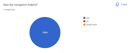 I created a google form regarding the feedback on my website, and created a page on my website that links the viewer to the UX testing page. 7 people filled out the form and these are the statistics: